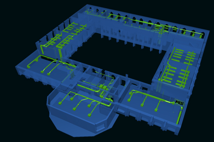 A la question de savoir pourquoi le maître d’ouvrage a choisi de réaliser sa maquette numérique à partir du DOE et non à partir d’un nuage de points, Grégory Vangreveninge a expliqué que le nuage de points nécessitait de scanner les espaces, pièce par pièce, ce qui était à la fois chronophage, compliqué à organiser dans un site occupé et coûteux à l’époque du démarrage du projet. En outre, les objectifs de l’exploitation n’ont pas les mêmes exigences que ceux de la conception, comme l’a souligné par Michael Hutin : « L’aspect graphique est secondaire, trop de détails graphiques peuvent même constituer un frein, l’essentiel étant lié à la question spatiale ».
